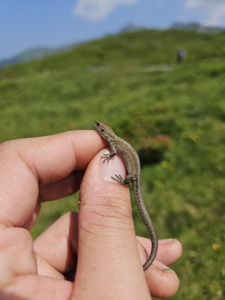 Newly recruited lab member learning how to respect herpetofauna and not jump on other colleagues